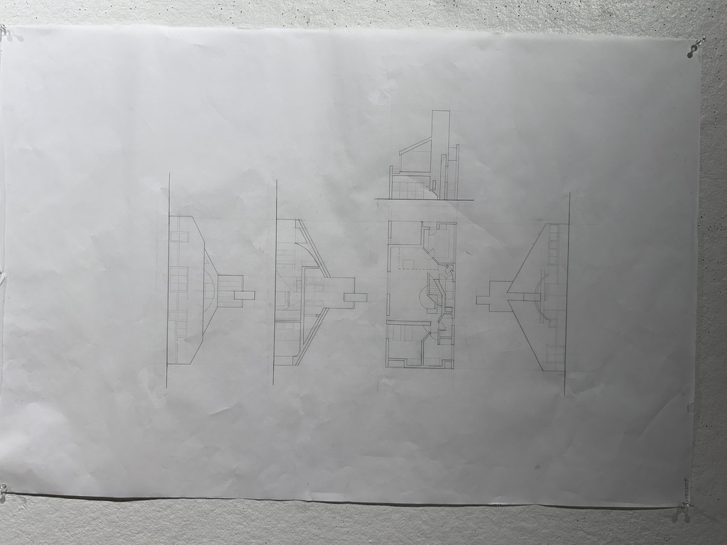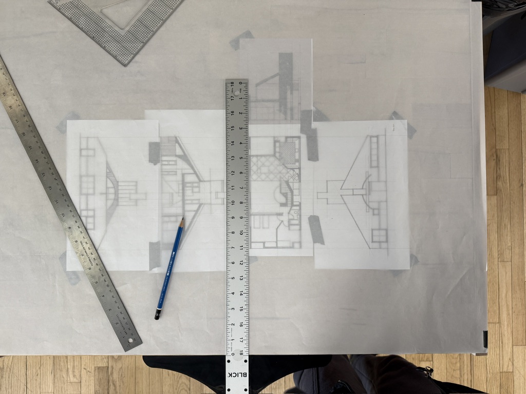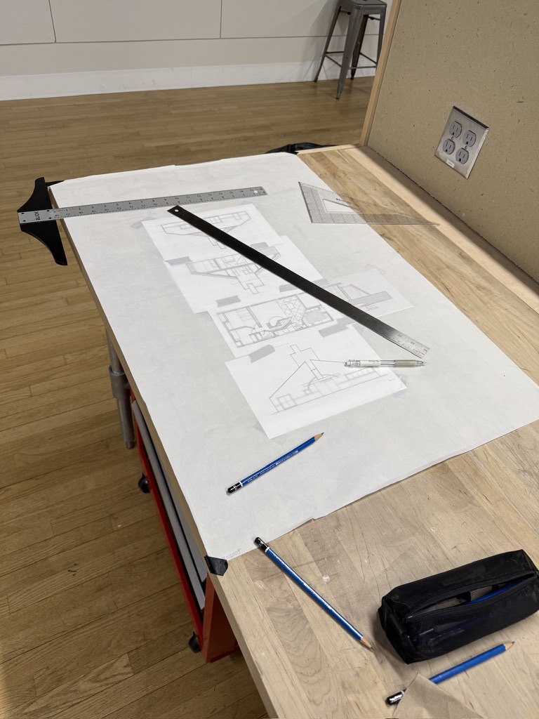 One thing I came to understand through this assignment was the importance of line weights. Their impact is most prominent in the plan and sections, as it is clear what is cut through vs what lies behind the cutline. Little things like line weight may not seem to be important when you start, but I could clearly see the impact they had when looking back at my process photos.