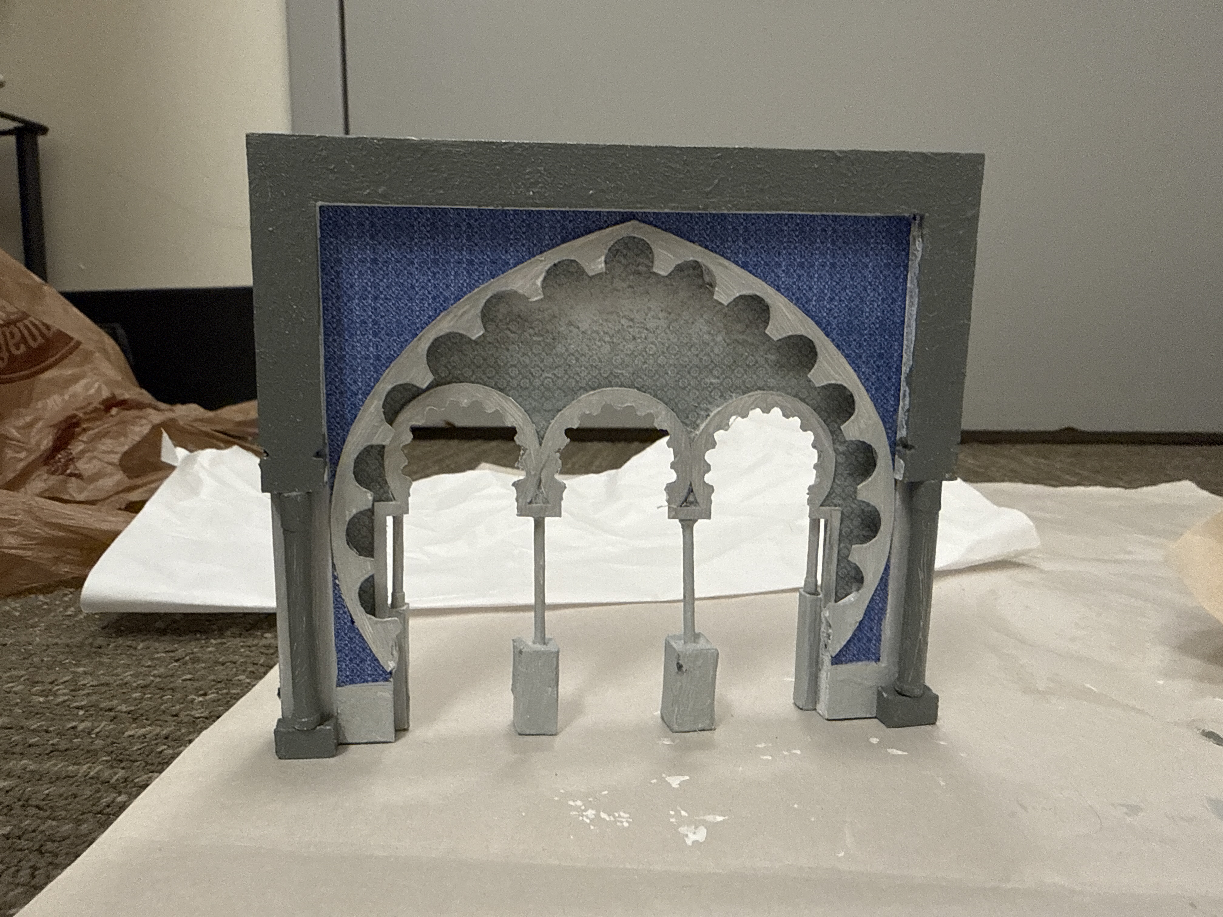 For my Advanced Set Design class, I drafted and modeled this Moorish wall from the image.